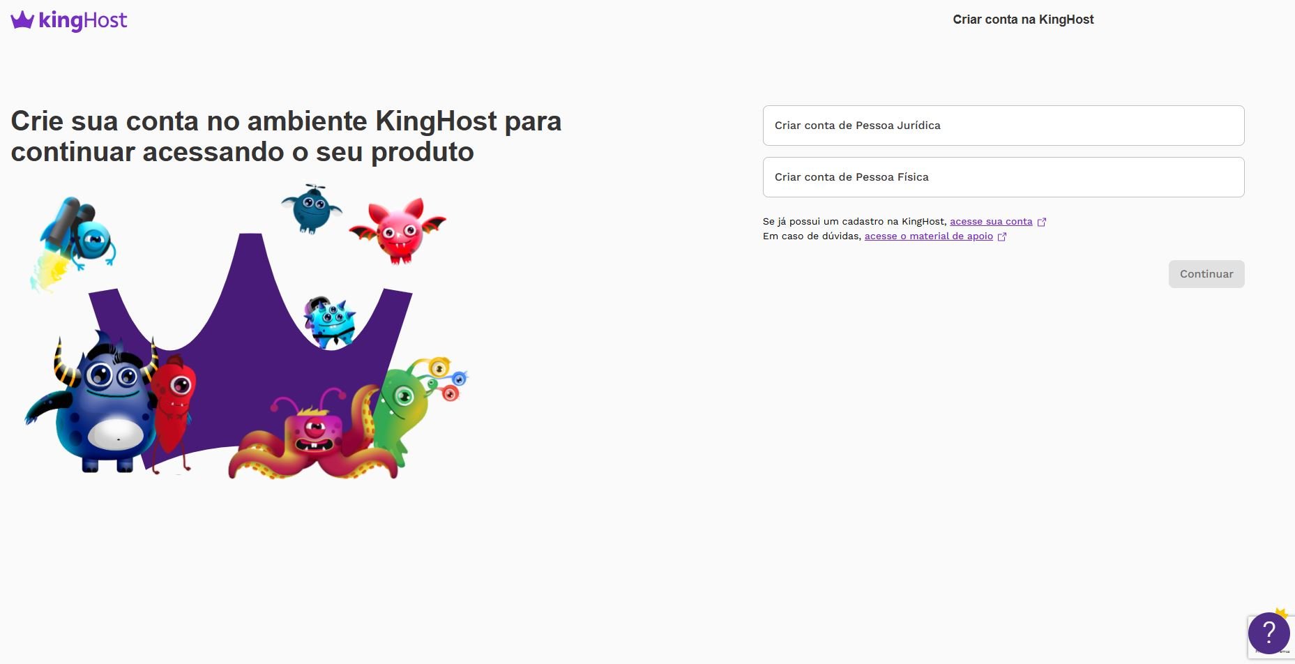 1 – Acesse o link: https://king.host/registro-gerenciador