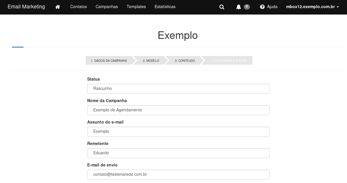 Após criada a campanha, já na quarta etapa, você deverá configurar os dados de envio: