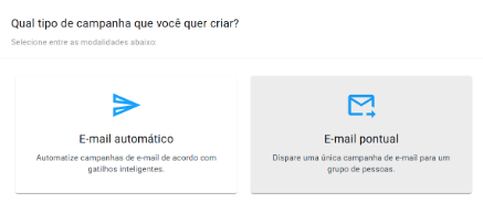 1 – Basta selecionar o canal (E-mail/WhatsApp Pontual)