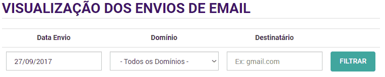 Basta definir o dia e/ou o domínio e/ou o destinatário e depois clicar no botão Filtrar para ter acesso aos logs.