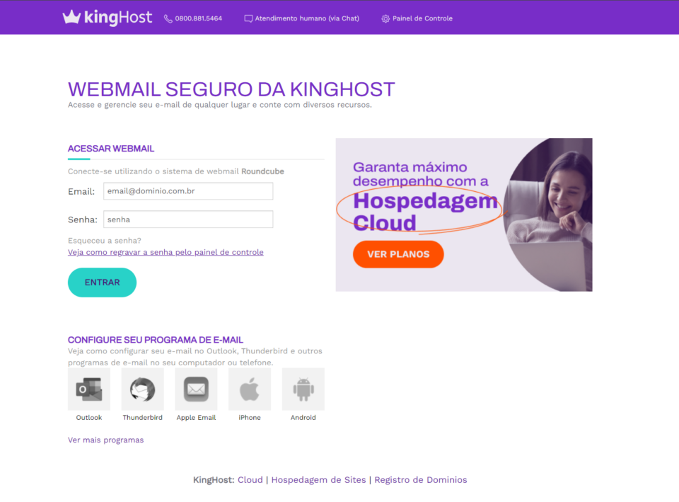 - O segundo método é utilizar o endereço webmail.kinghost.net.